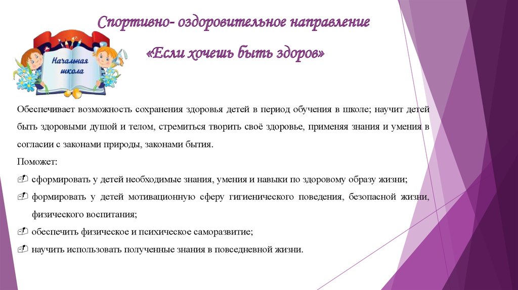 Обеспечивает возможность сохранения здоровья детей в период обучения в школе; научит детей