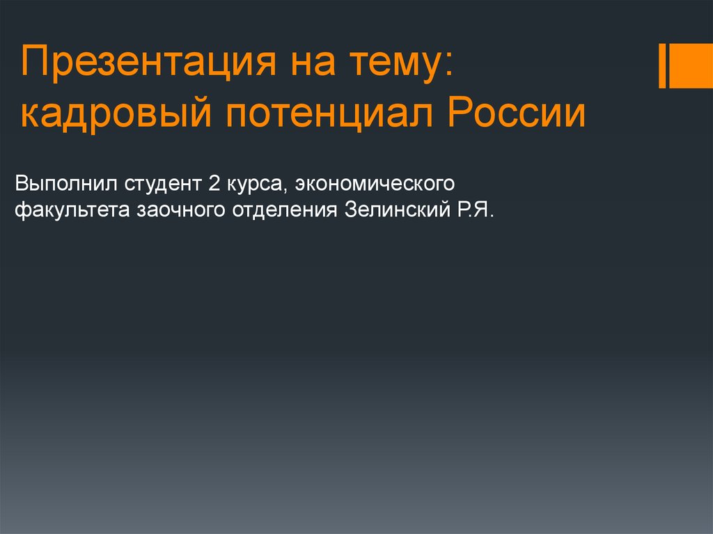 Кадровый потенциал общества (кадровый потенциал России) - частьтрудовых профессионально подготовленных ресурсов общества,