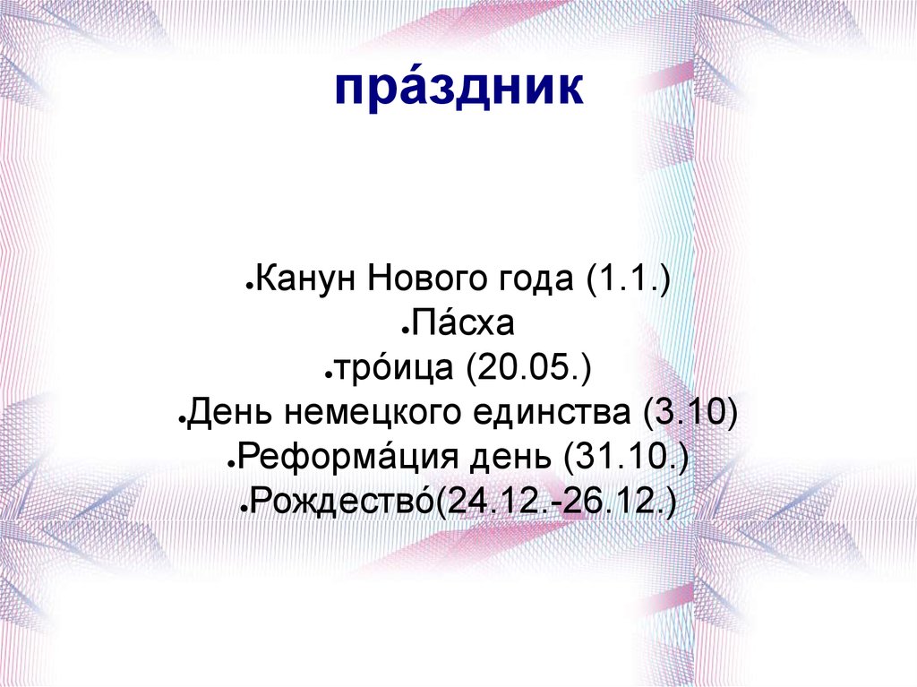 пра́здникКанун Нового года (1.1.)