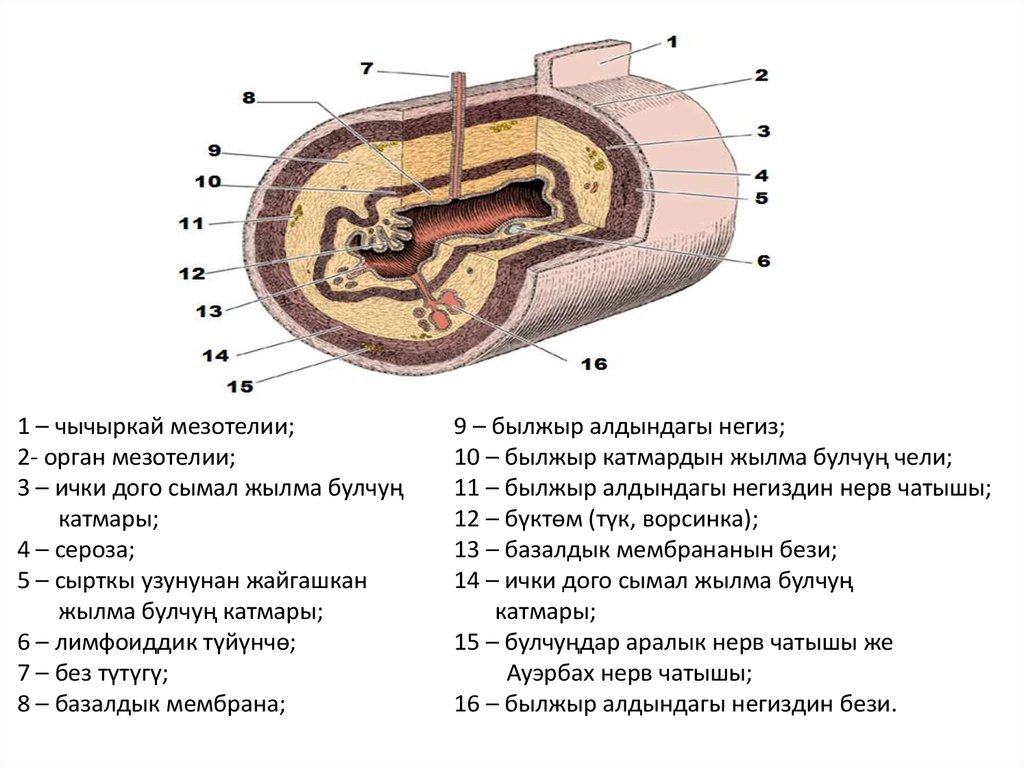 13 – базалдык мембрананын бези;