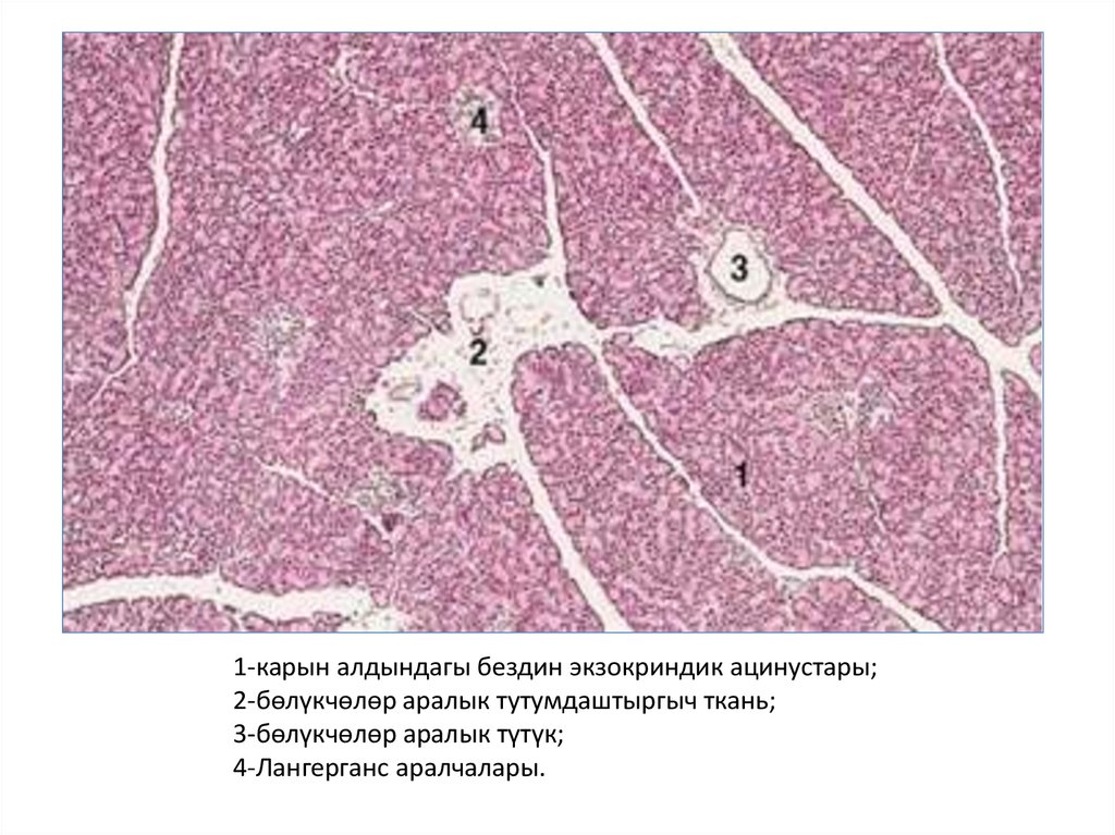 4 – боор бөлүкчөсү ичиндеги веноздук синуч сымал капиллярлар;