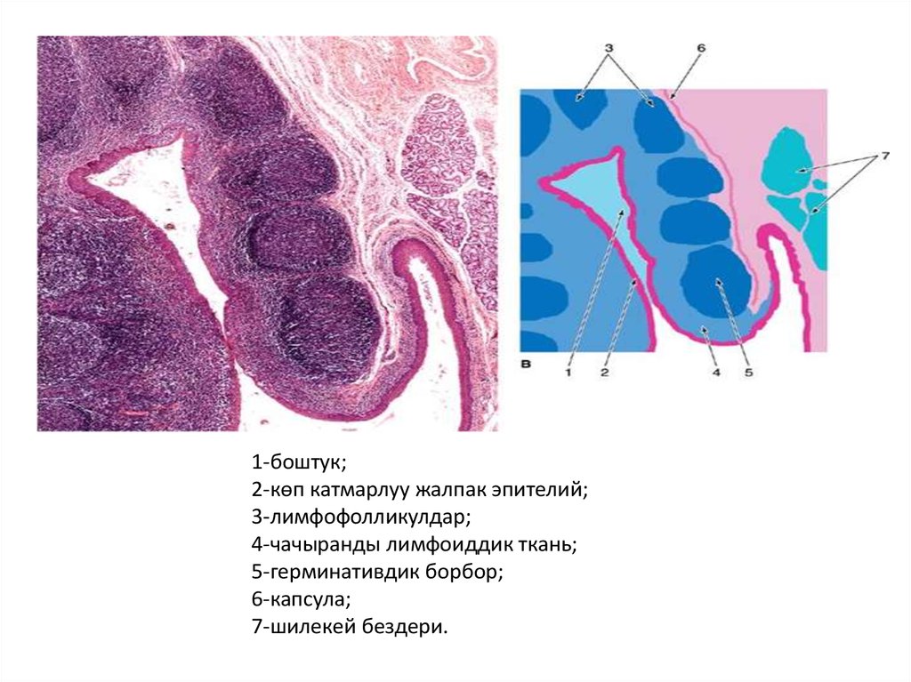 1-боштук;2-көп катмарлуу жалпак эпителий;