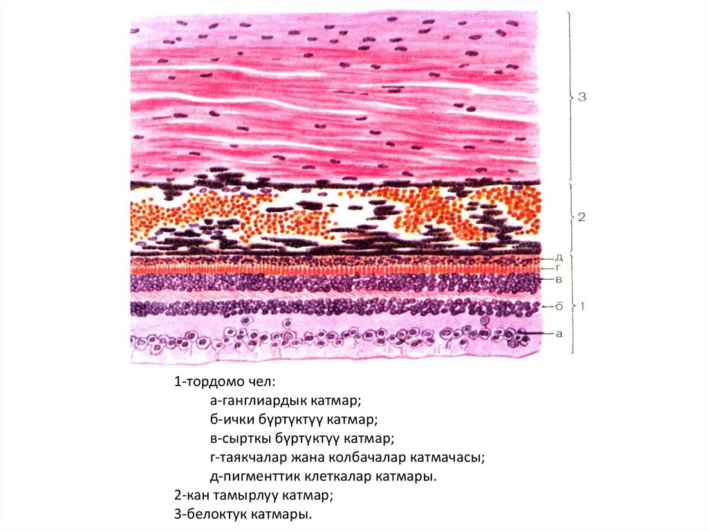 1-тордомо чел:а-ганглиардык катмар;