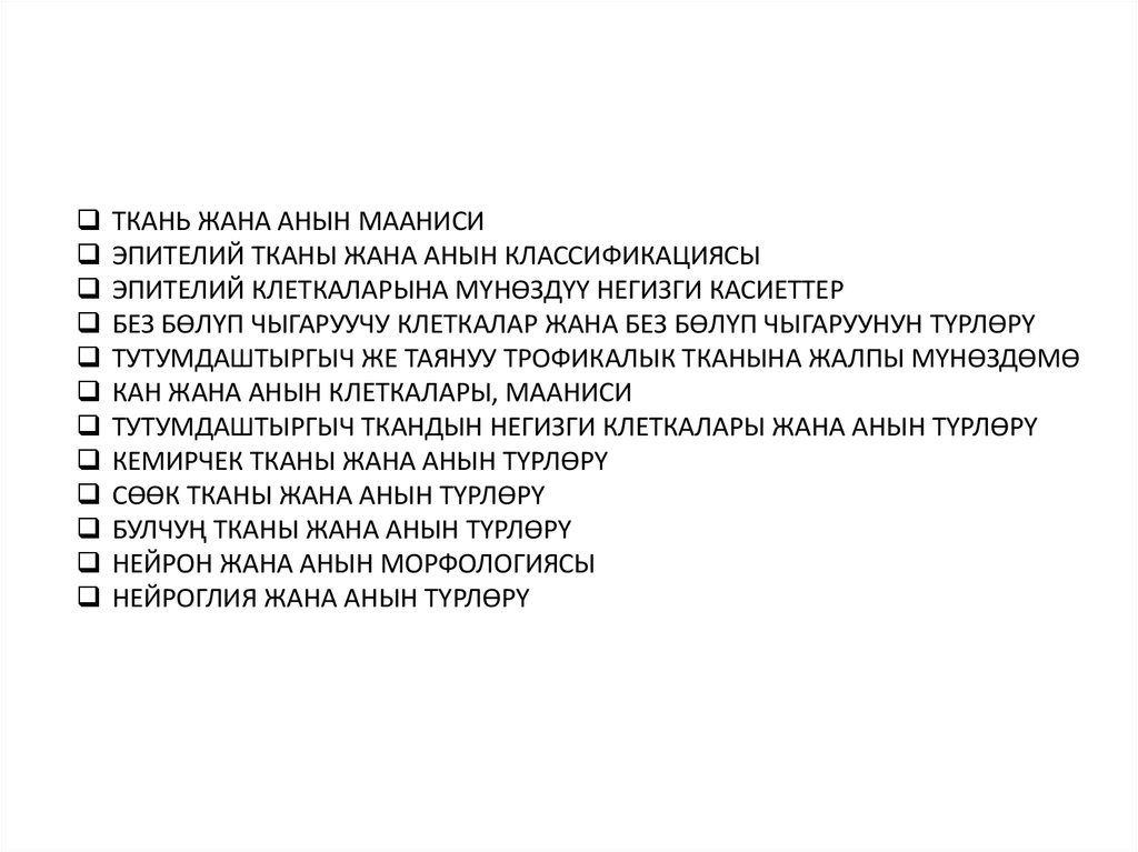 ТКАНЬ ЖАНА АНЫН МААНИСИЭПИТЕЛИЙ ТКАНЫ ЖАНА АНЫН КЛАССИФИКАЦИЯСЫ