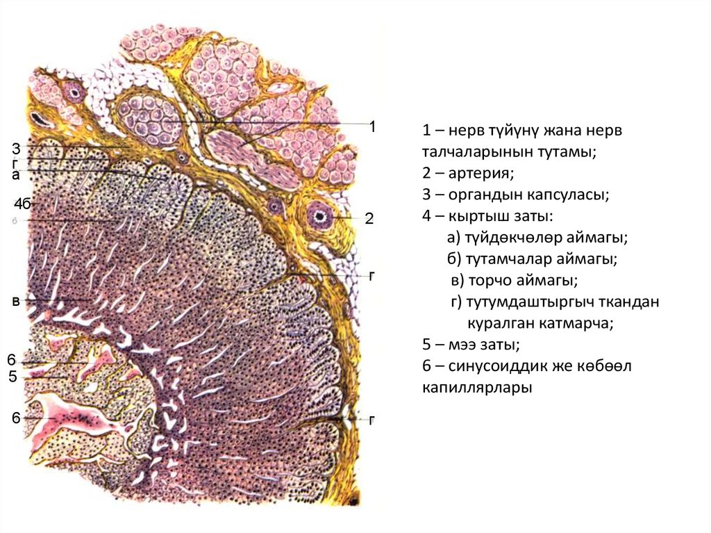 6 – лимфоиддик түйүнчө;