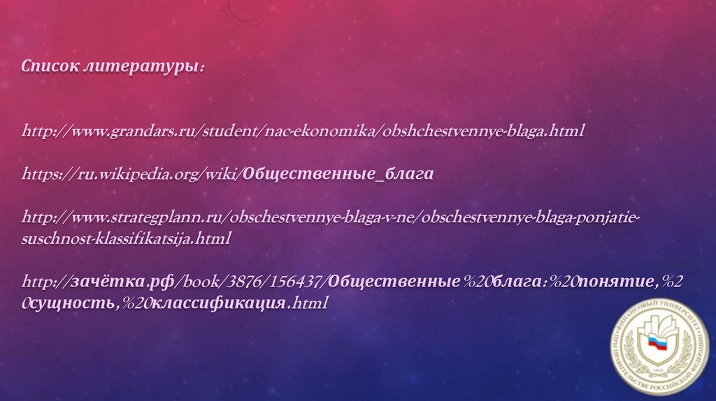 Список литературы:http://www.grandars.ru/student/nac-ekonomika/obshchestvennye-blaga.html