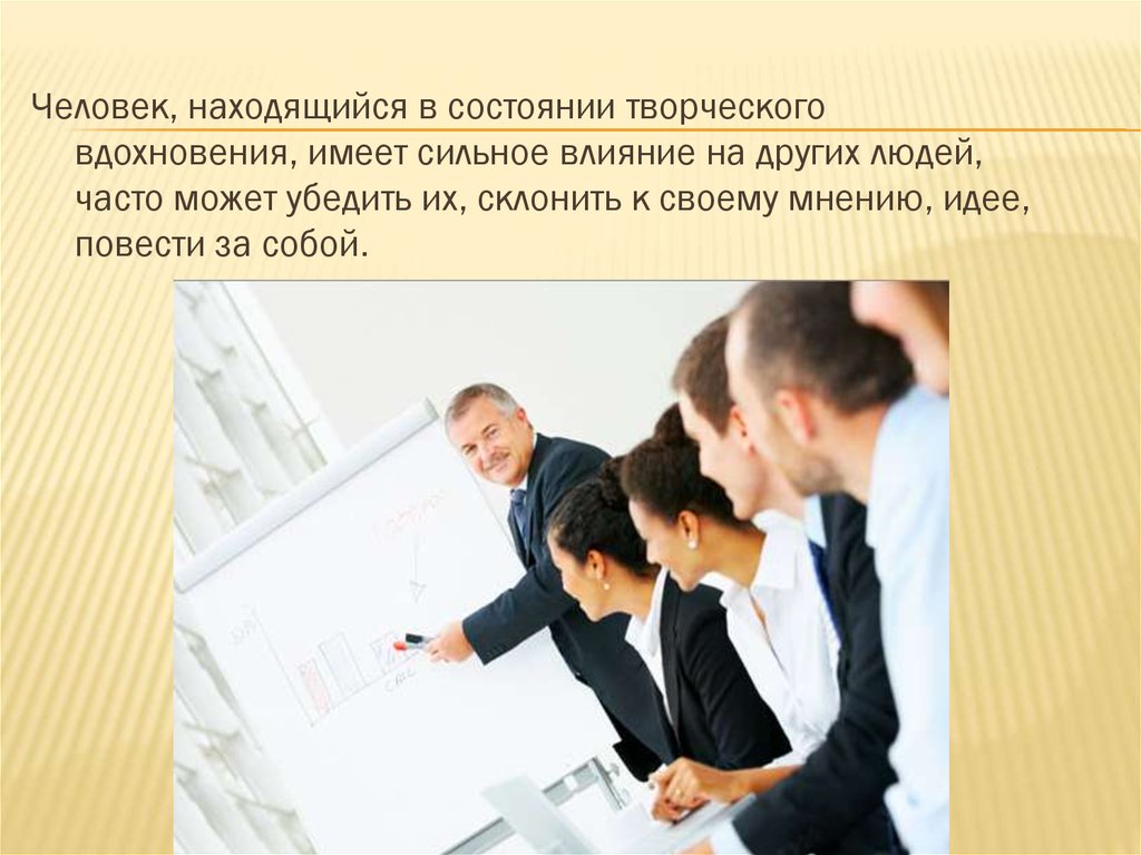Человек, находящийся в состоянии творческоговдохновения, имеет сильное влияние на других людей,