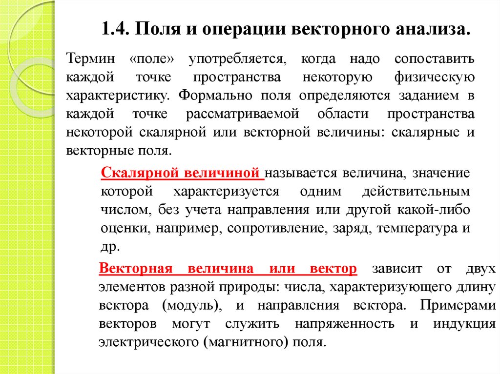 1.2. Векторные функции, характеризующиеэлектромагнитное поле.