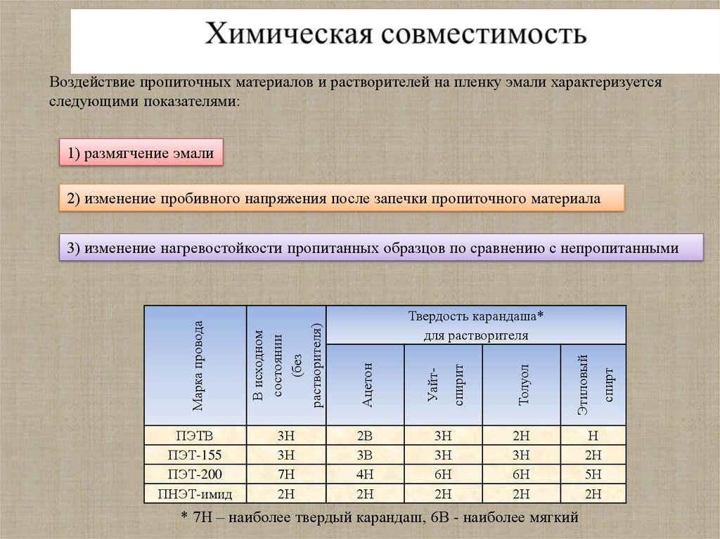 2) Эксплуатационная совместимость – способность эмалевой изоляции и пропиточного