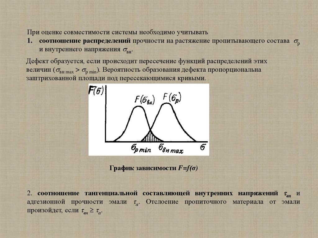 При оценке совместимости системы необходимо учитывать1. соотношение распределений прочности на растяжение пропитывающего состава р