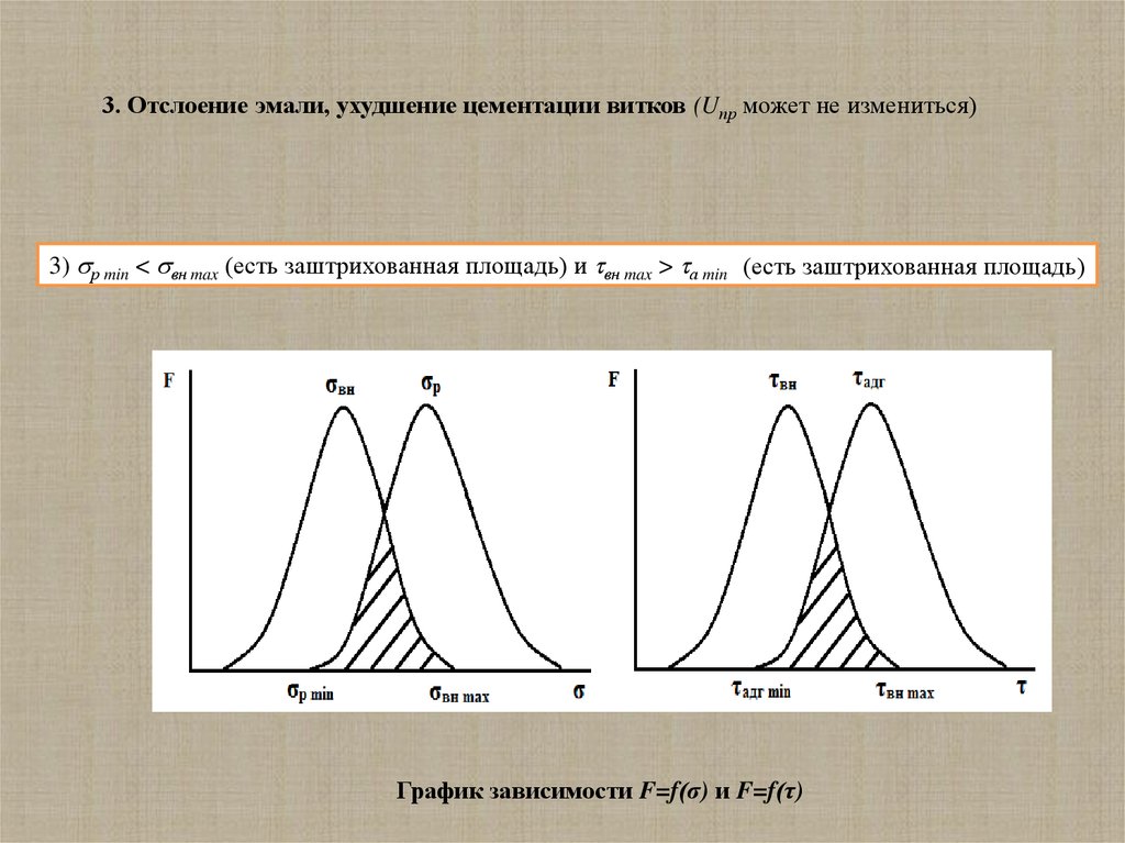 3. Отслоение эмали, ухудшение цементации витков (Uпр может не измениться)3) р min < вн max (есть заштрихованная площадь) и вн max > а min (есть заштрихованная площадь)