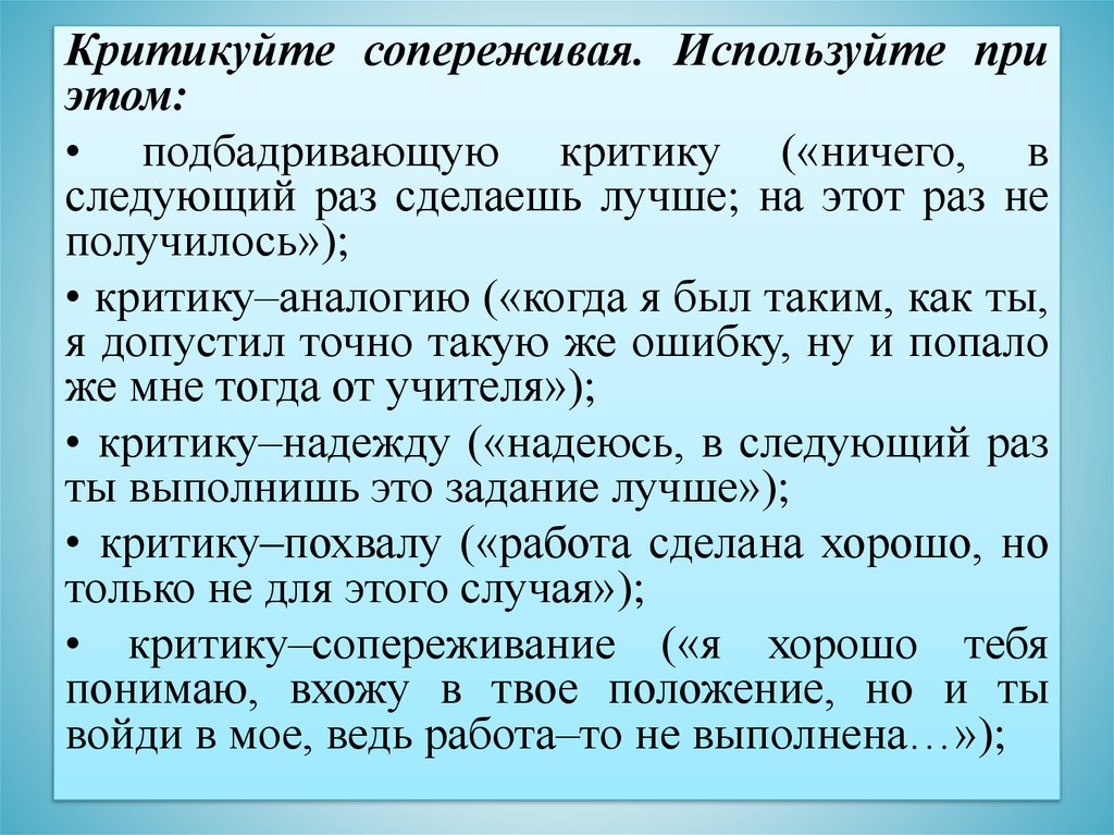 Критикуйте сопереживая. Используйте приэтом: