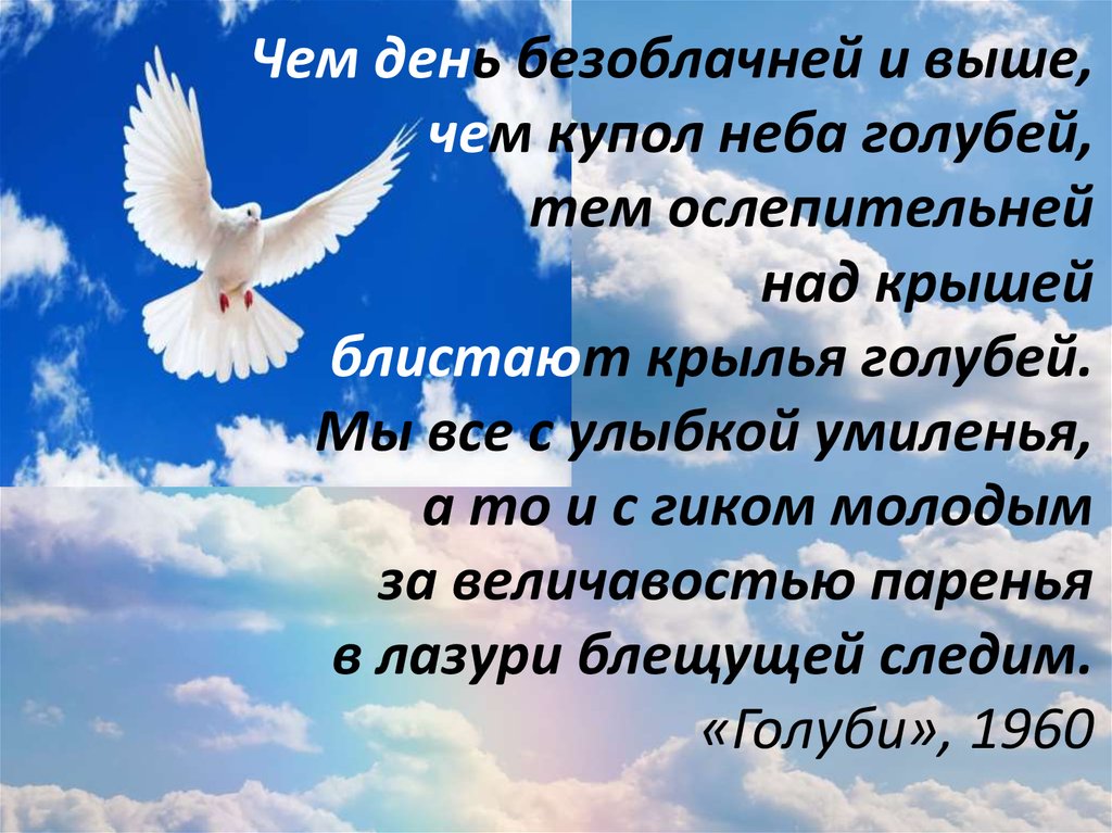 Чем день безоблачней и выше,чем купол неба голубей,