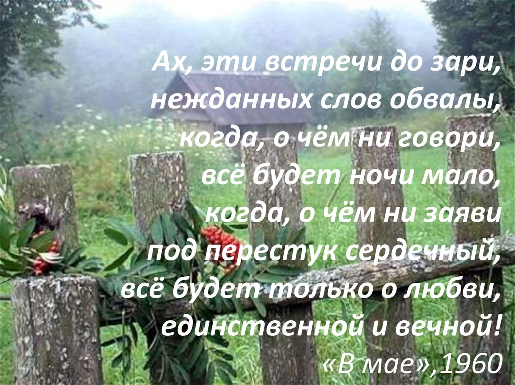Ах, эти встречи до зари,нежданных слов обвалы,