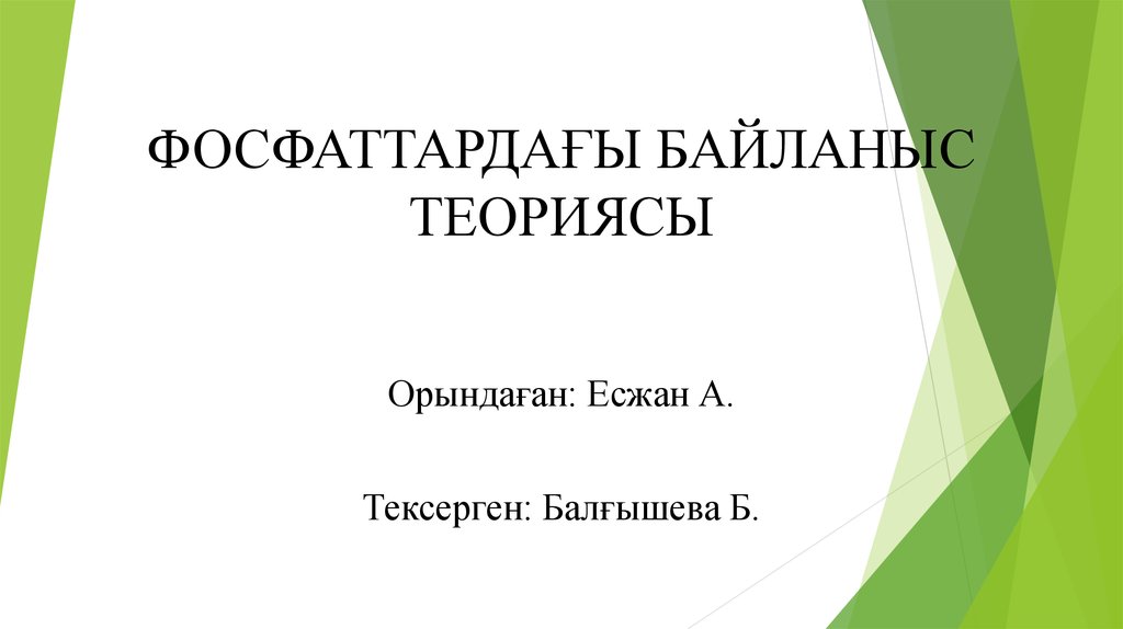 1. ФОСФАТТАРДАҒЫ БАЙЛАНЫС ТЕОРИЯСЫ