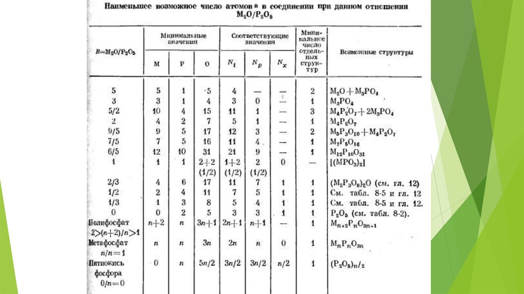 төменгі сандарын есептеуге болады. Кейбір R сандарына сай фосфат құрылым-дары белгісіз,