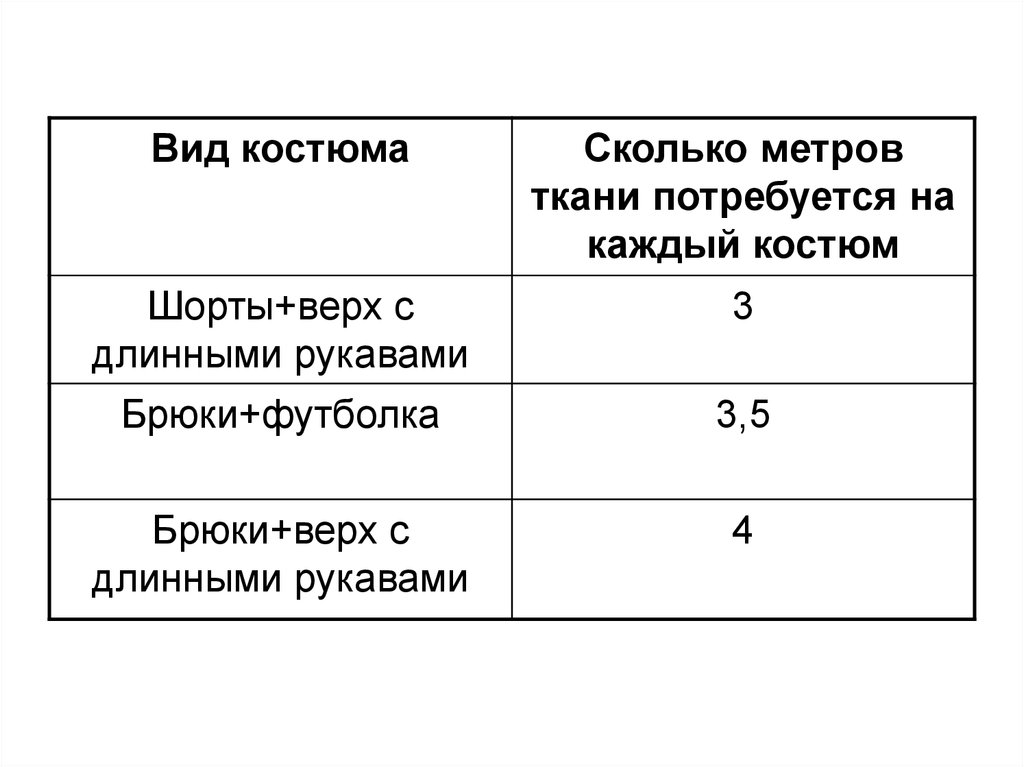 Вид костюмаСколько метров