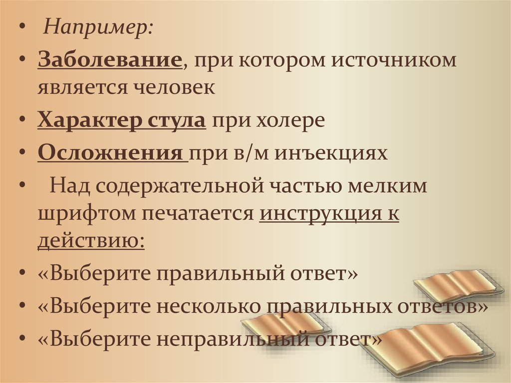• Например:• Заболевание, при котором источником