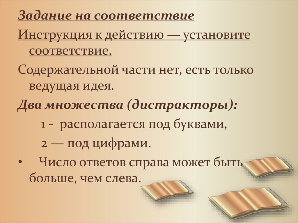 Пример задания на соответствиеУстановите соответствие