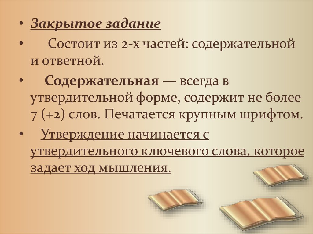 • Задания только в утвердительной форме.