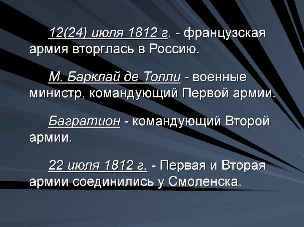 12(24) июля 1812 г. - французскаяармия вторглась в Россию.
