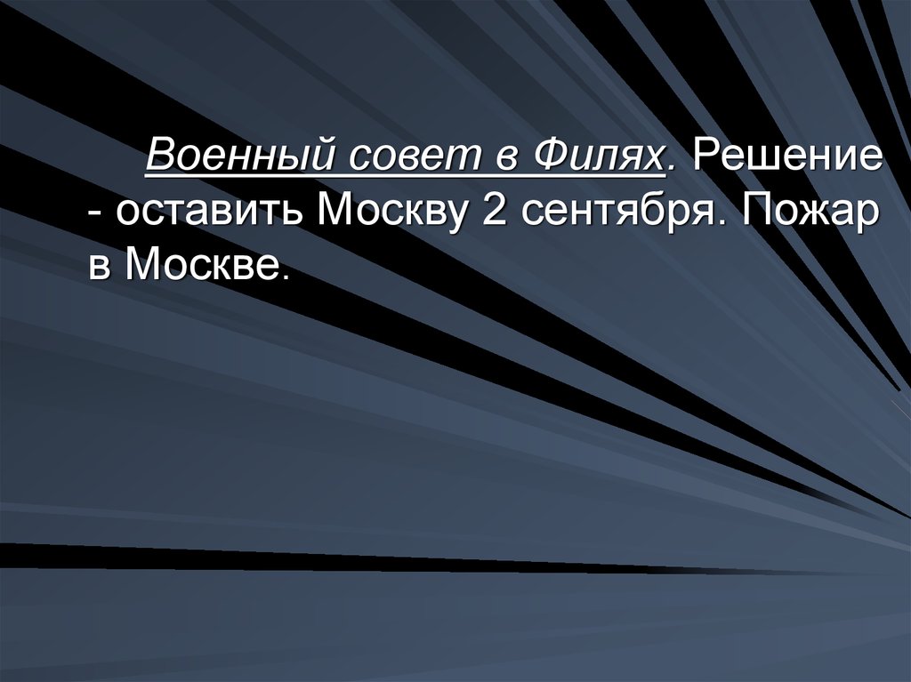 Военный совет в Филях. Решение- оставить Москву 2 сентября. Пожар