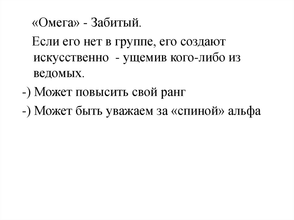 • "Альфа" (Главарь) пользуетсяпреимущественным правом присвоения