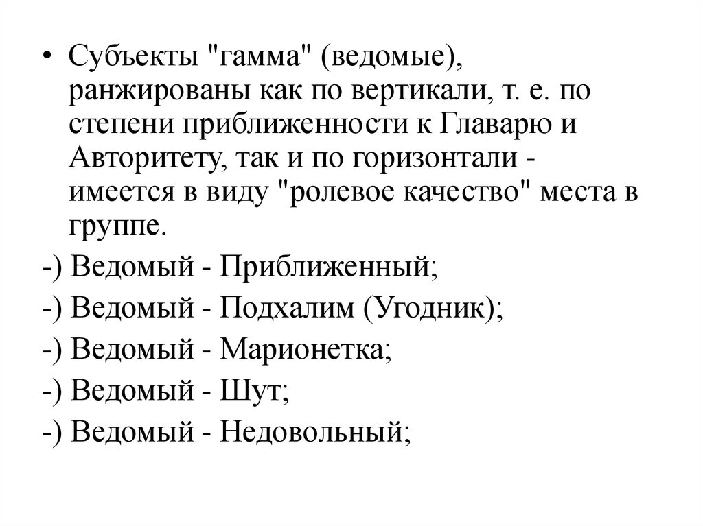 • Субъекты "гамма" (ведомые),ранжированы как по вертикали, т. е. по