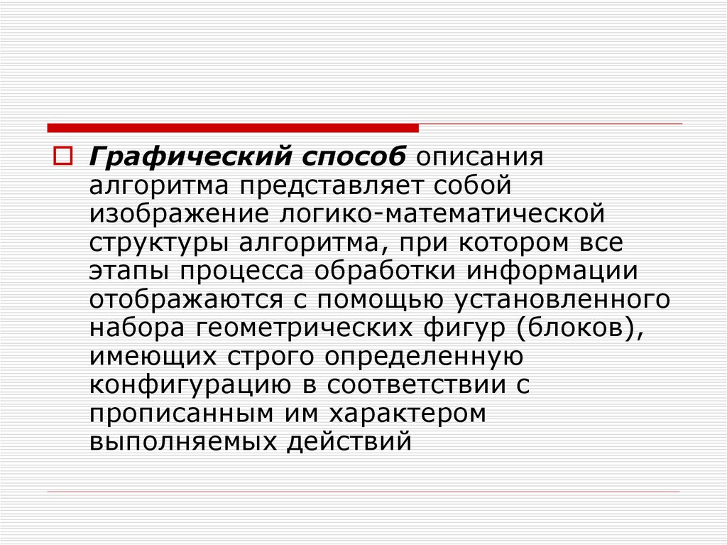 Графический способ описанияалгоритма представляет собой