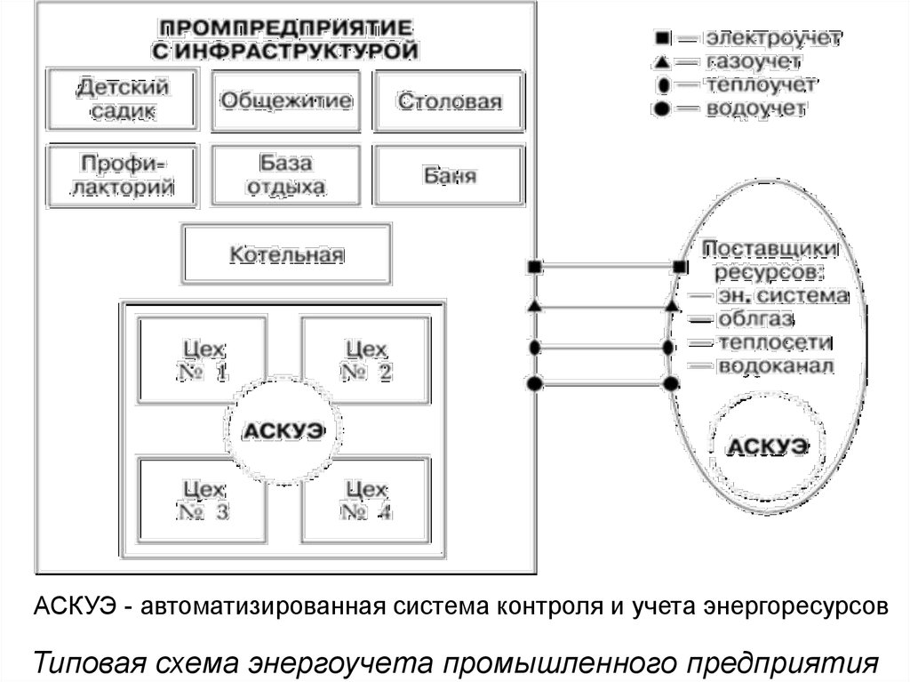 АСКУЭ - автоматизированная система контроля и учета энергоресурсовТиповая схема энергоучета промышленного предприятия