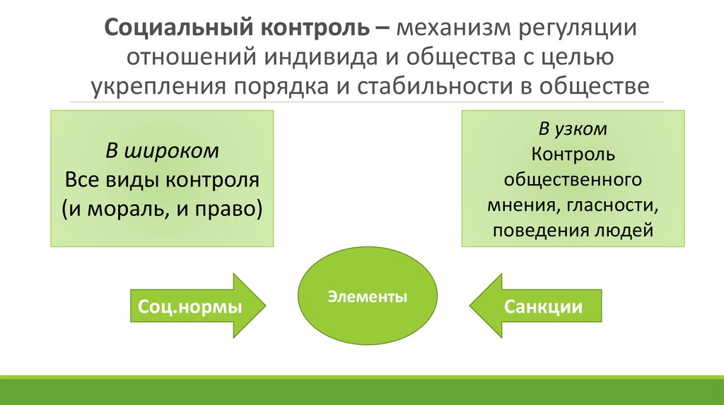 Социальный контроль – механизм регуляцииотношений индивида и общества с целью