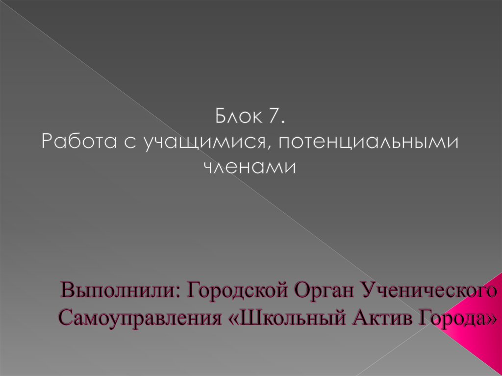 1. Выполнили: Городской Орган Ученического Самоуправления «Школьный Актив Города»