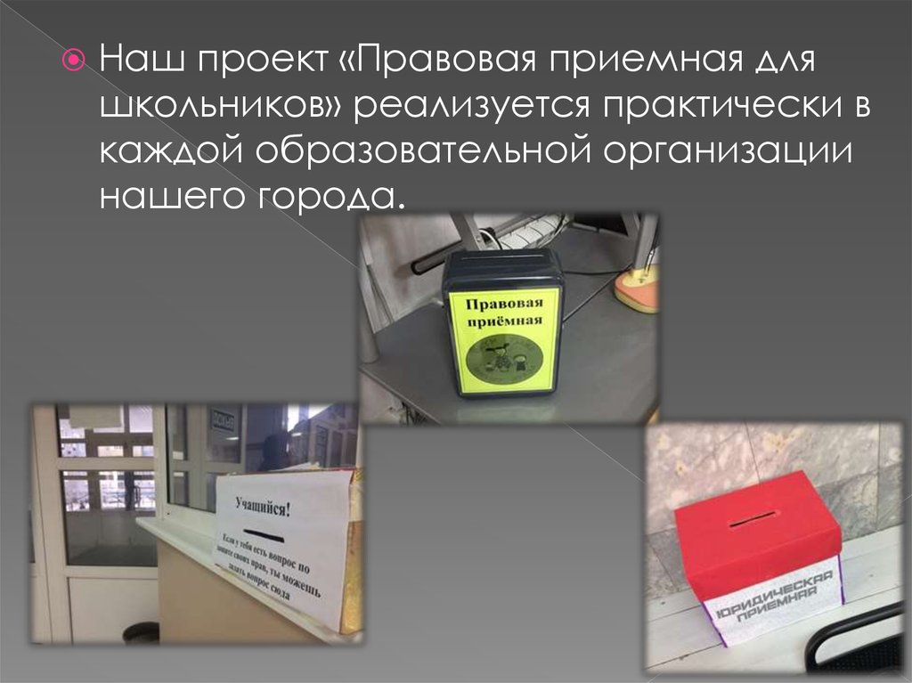 Наш проект «Правовая приемная дляшкольников» реализуется практически в