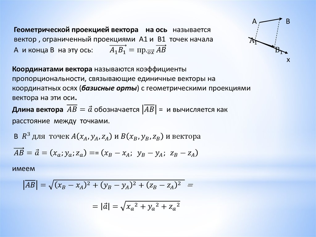 которые называются векторами. Вектор с началом в точке А