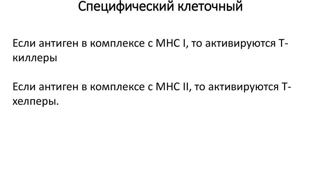 Специфический клеточныйЕсли антиген в комплексе с МНС I, то активируются Ткиллеры