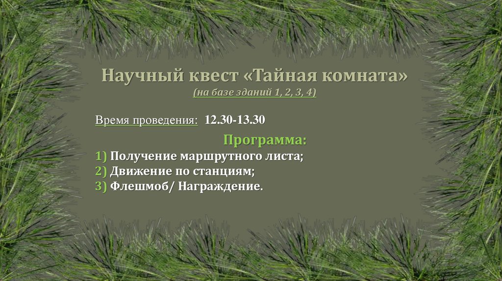 Научный квест «Тайная комната»(на базе зданий 1, 2, 3, 4)