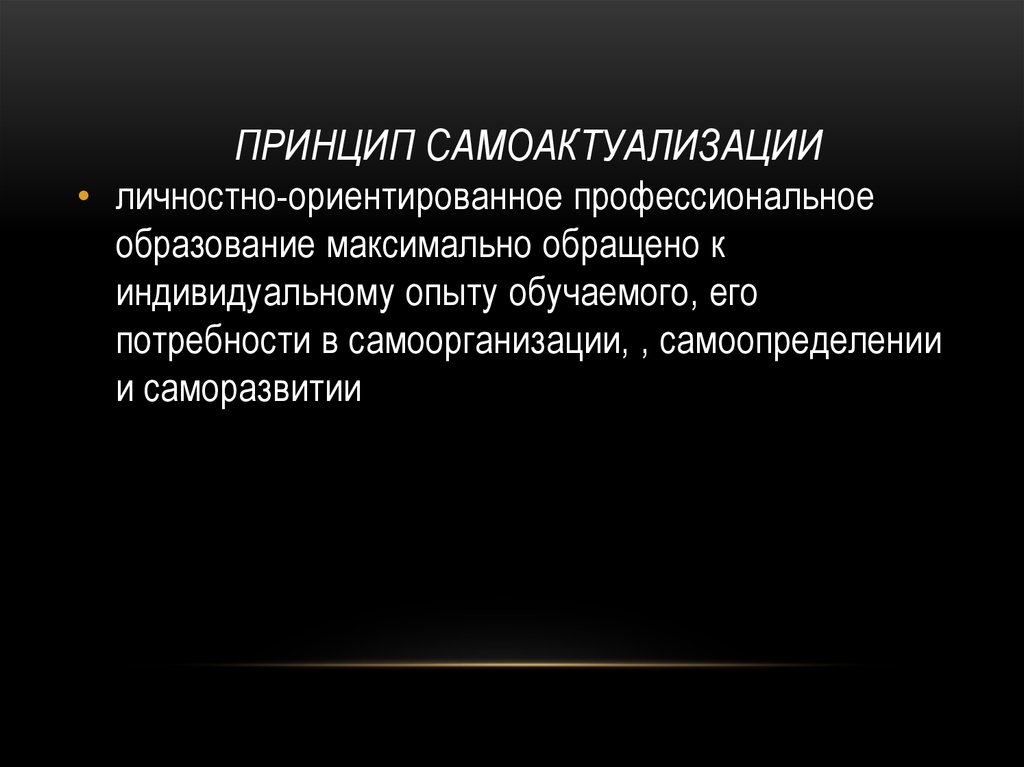 ПРИНЦИП САМОАКТУАЛИЗАЦИИ• личностно-ориентированное профессиональное
