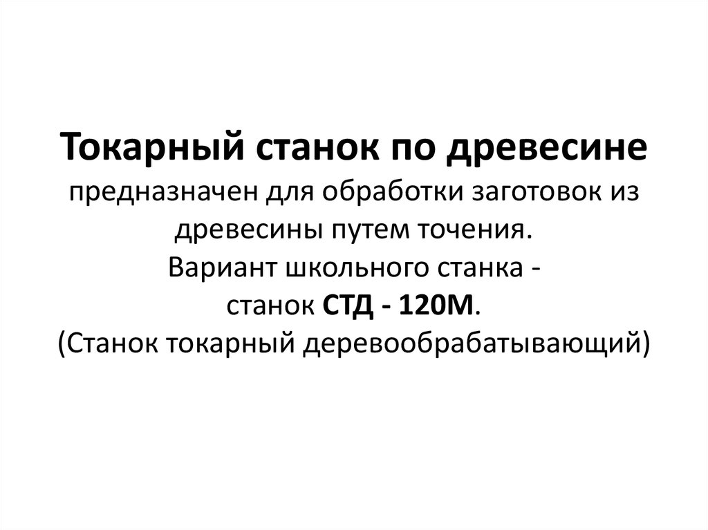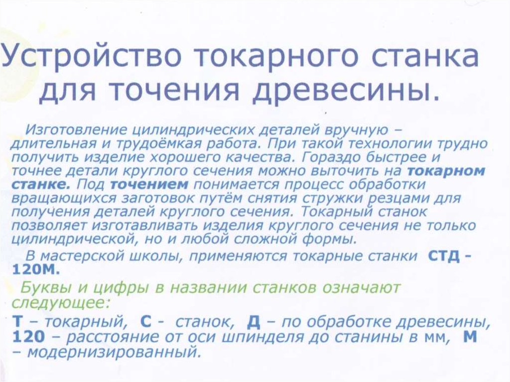 1. Токарный станок по древесине предназначен для обработки заготовок из древесины путем точения. Вариант школьного станка - станок