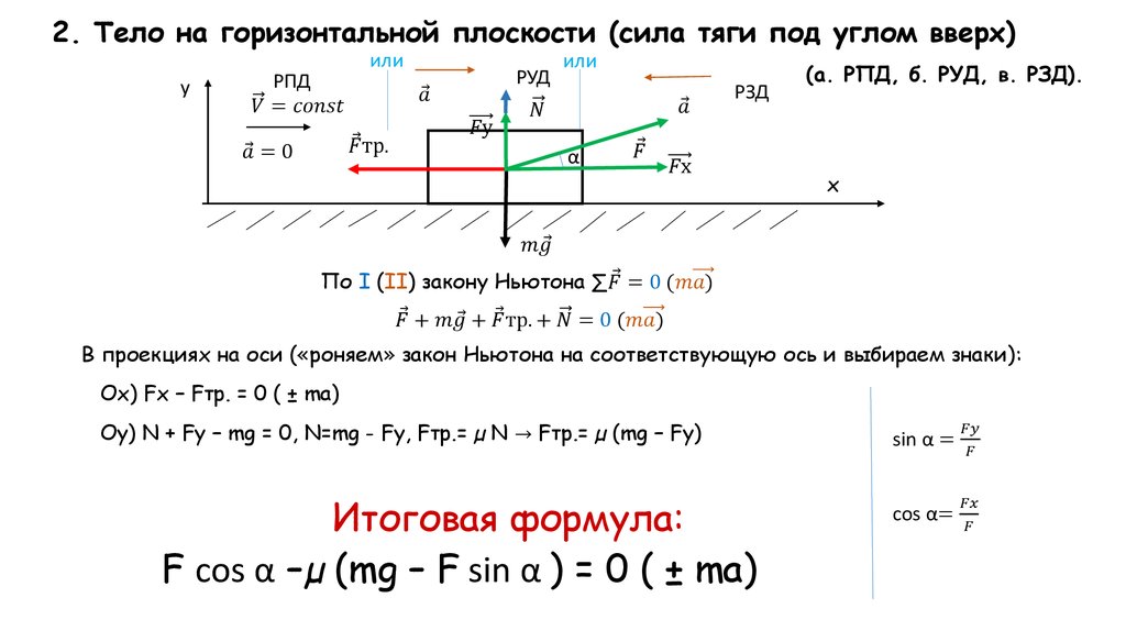 1. Тело на горизонтальной плоскости (а. РПД, б. РУД, в. РЗД).