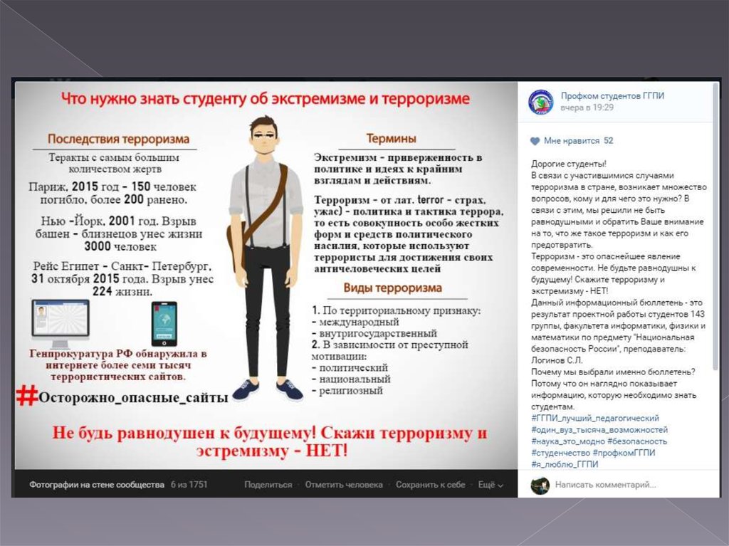 • Знать и владеть информацией обэкстремизме и терроризме;