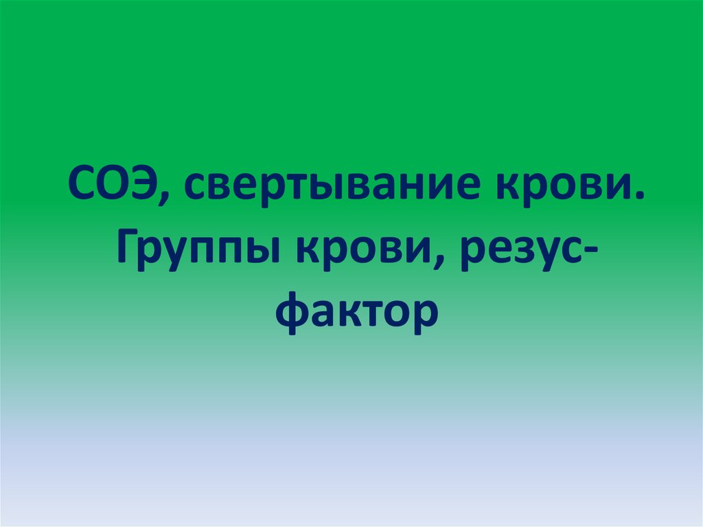 1. СОЭ, свертывание крови. Группы крови, резус-фактор