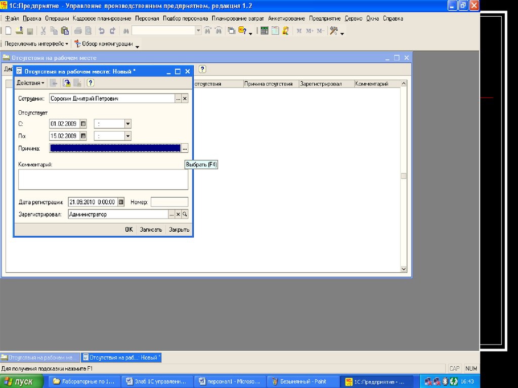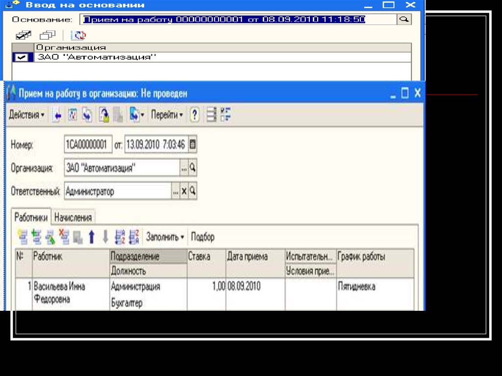 данным регламентированного учета, а документ «Прием на работу» аналогичное событие управленческого учета.