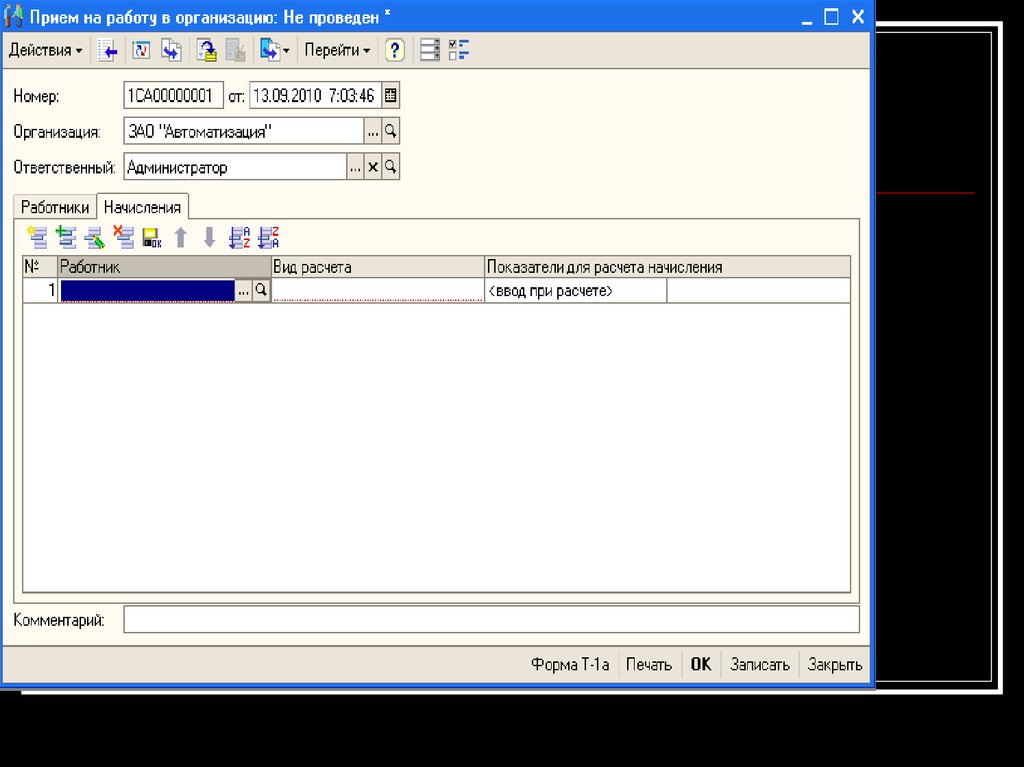 сотрудников на работу. Поле «Организация» в документе отсутствует,