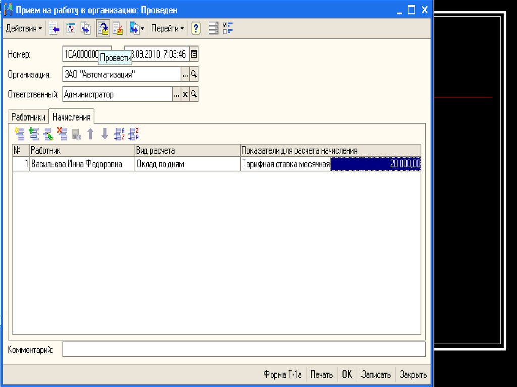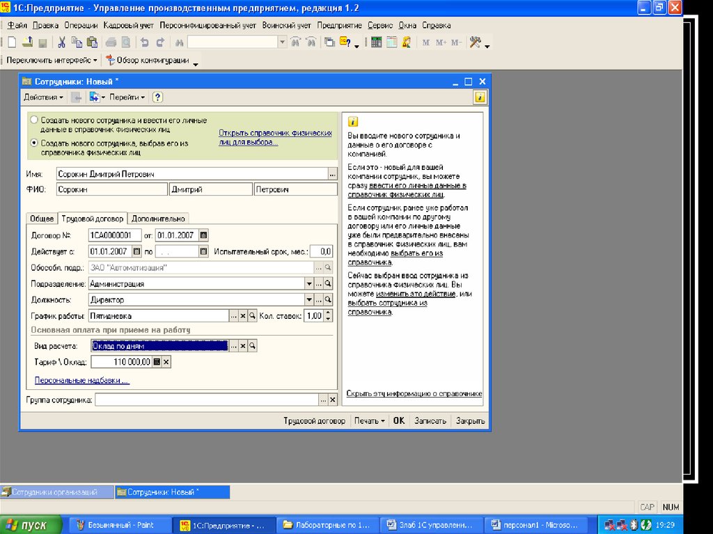 21. Оформим прием в организацию по данным справочника «сотрудники»