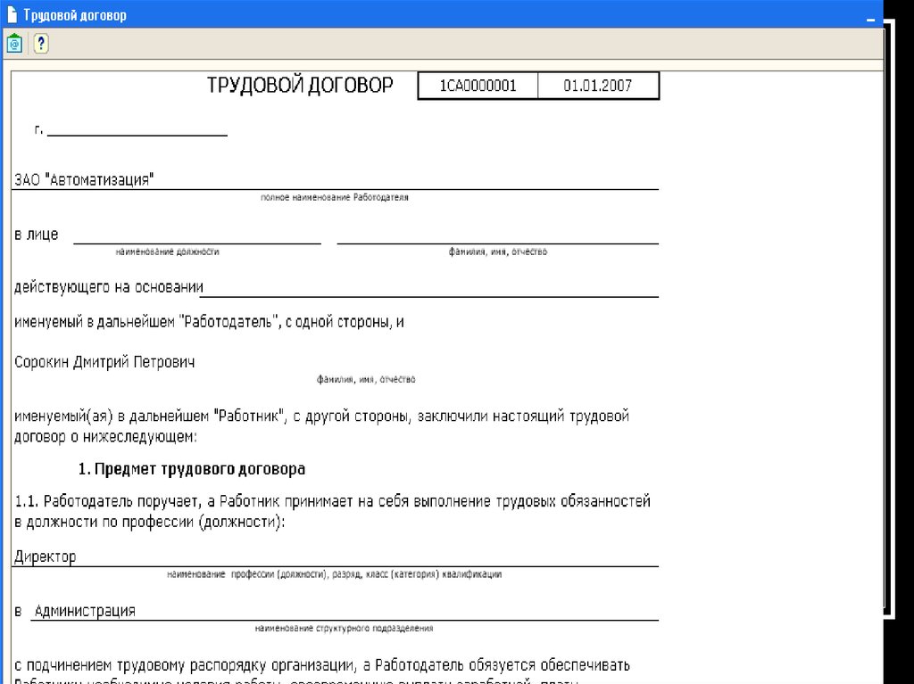 Для каждого кадрового документа в программе предусмотреноформирование так называемой печатной формы документа.