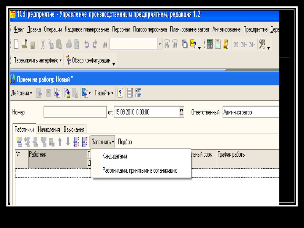 «Работниками, принятыми в организацию» меню кнопки «Заполнить».