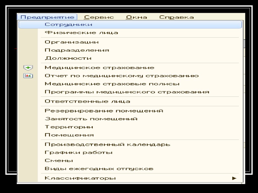интерфейсе «Управление персоналом», зайдем в пункт меню