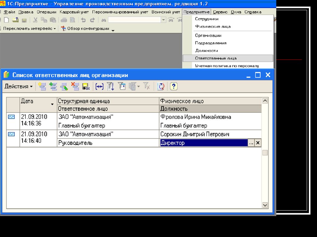 «Предприятие» из интерфейса «Кадровый учет организации» и