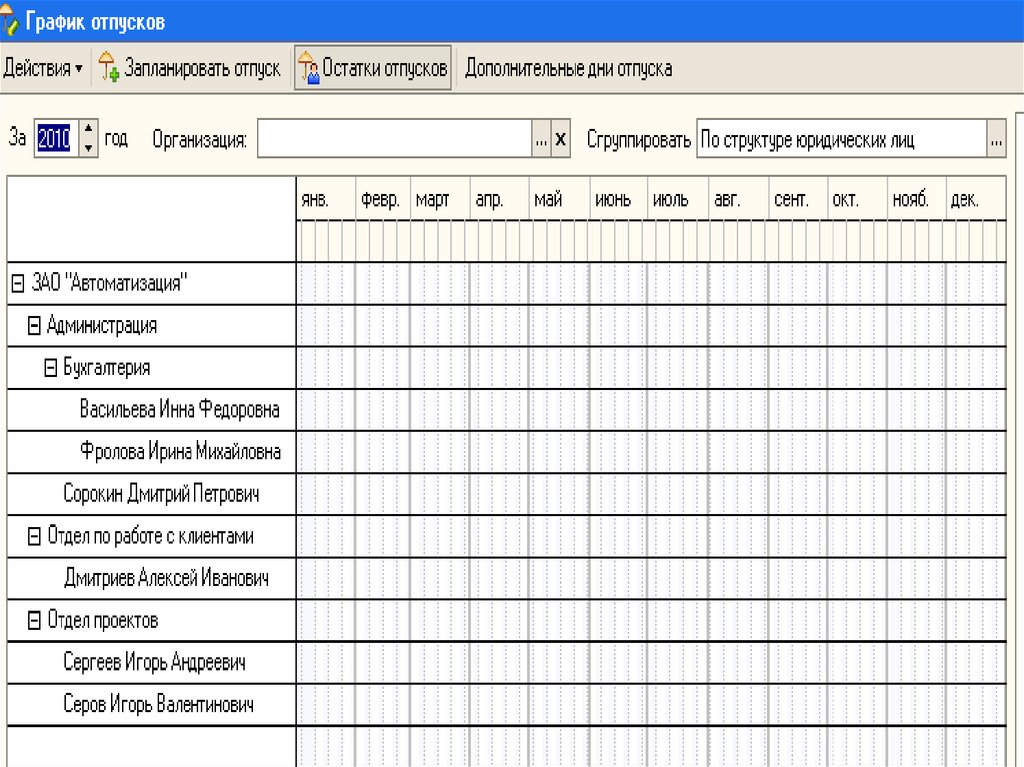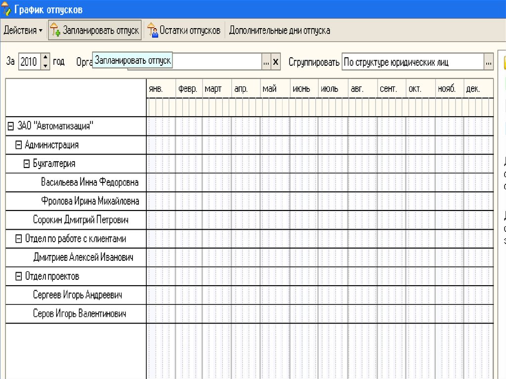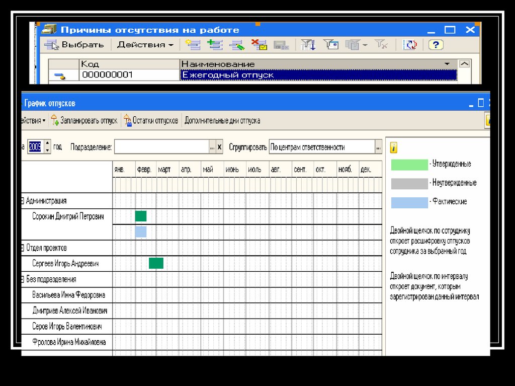 отпусков, больничных и прочих невыходов сотрудников на работу.