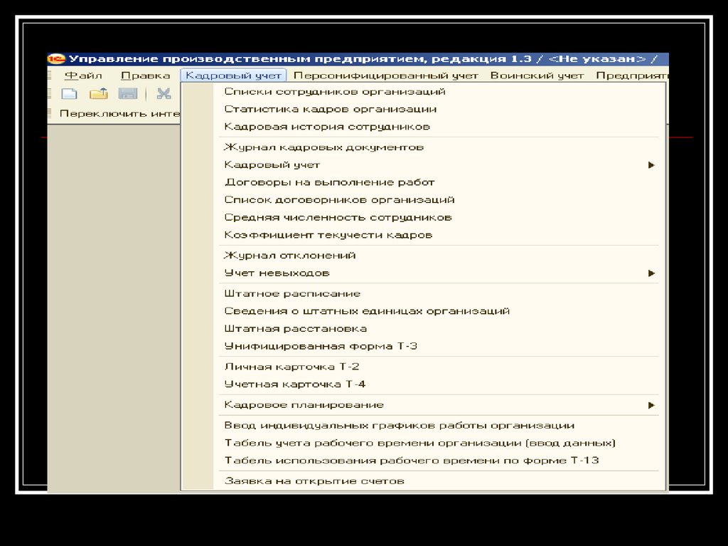 «1С: Управление производственным предприятием 8»включает в себя подсистему учета персонала,